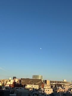窓を開けると真っ青な空に昼の月が見えた。